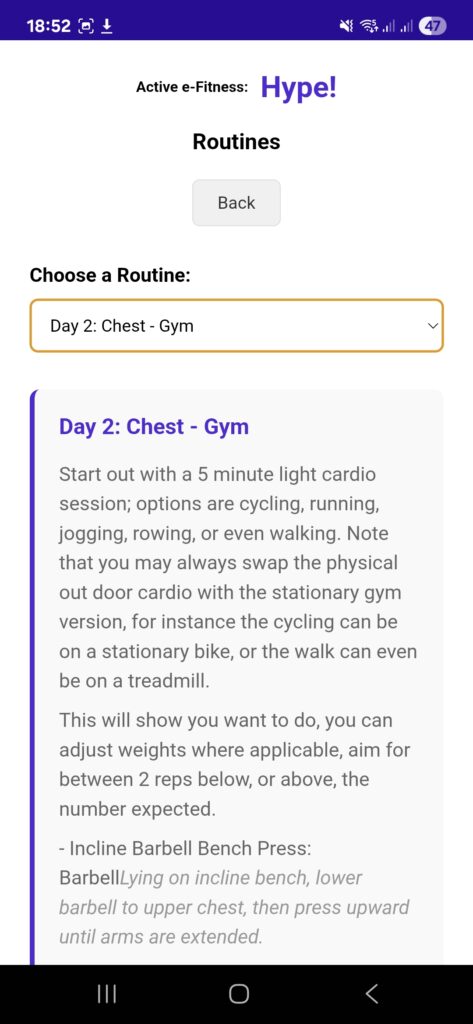 AeF:Hype is a comprehensive fitness tracking application designed with one goal: help users achieve fat loss, to develop a lean, muscular physique through consistent workout routines, progressive tracking, and motivational challenges. The app aims to help with consistency, and gradual progression, which are the keys to sustainable fitness transformation, providing users with the tools and motivation needed for long-term success.
